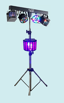 Rigtig god pakke med lydsystem og diskotekslys til et dansegulv